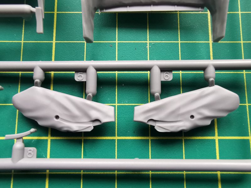 Trzecia wypraska jest znacznie mniejsza od opisanych powyżej. Znajduje się na niej płócienna „buda”, osłona przeciwdeszczowa kabiny pasażerskiej. Wykonana bardzo realistycznie i także przewidująca jedną opcję – w pozycji złożonej. Oczywiście jak komuś będzie zależało, może we własnym zakresie w pozycji rozłożonej, ale czy ma to sens. Nie wiem.