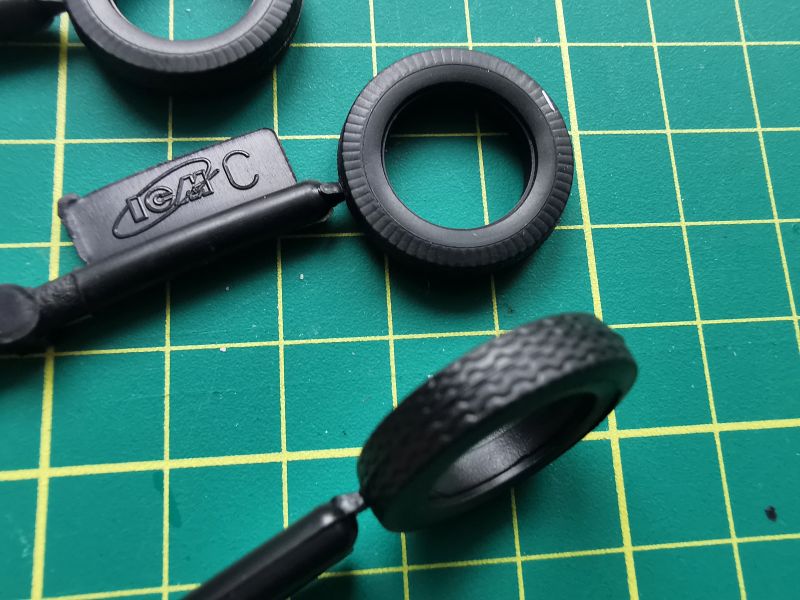 Elementy polistyrenowe, jak to w takich zestawach bywa są uzupełnione o winylowe opony. Sześć opon z ładnie wykonaną imitacją bieżnika, bez żadnych oznaczeń czy napisów na bokach. Widocznie tak miało być.
