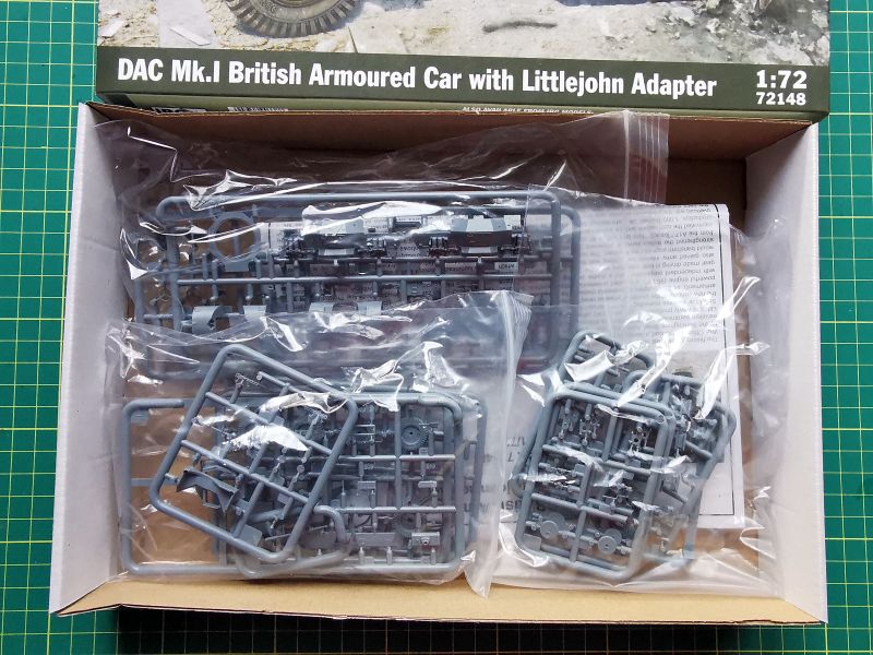 Do chwili obecnej IBG Models wydała już trzy zestawy umożliwiające budowę miniatury tego brytyjskiego samochodu pancernego. Wydano modele dwóch wersji podstawowych, Mk.I i Mk.II oraz jednej modyfikacji polowej „Swan-Off”. Teraz na rynek trafiła werjsa Mk.I zmodyfikowana poprzez umieszczenie na lufie adaptera „Littlejohn”. Zmniejszał on jej średnicę jej wylotu z 45 do 30 mm, dzięki czemu wolframowe pociski APSV mogły przebijać 80 mm pancerz już z odległości 500 m. Jak to wpływa na całokształt zestawu? NA pierwszy rzut oka, poza innym boxartem nie widać specjalnie różnic.