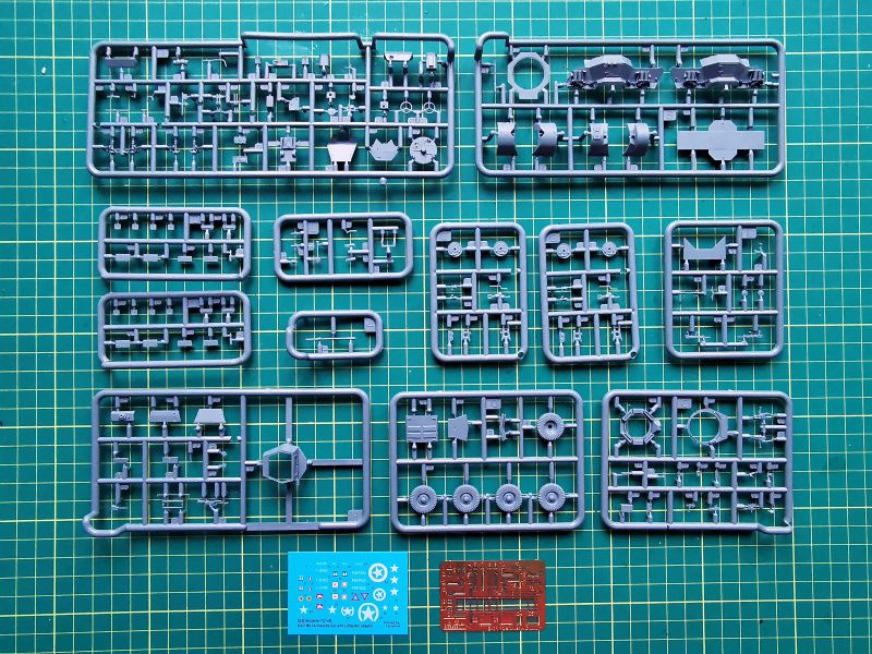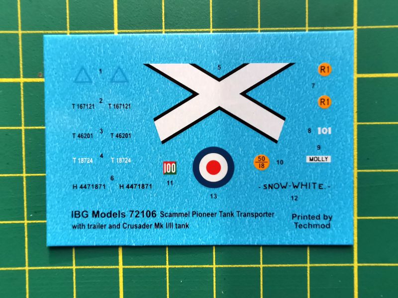 Kalkomania natomiast została przygotowana na potrzeby omawianego zestawu. Niewielki arkusik, pomimo dość sporych elementów graficznych do umieszczenia na szoferce ciężarówki. Oznaczenia na czołgi mają za to postać nader skromną, bo ograniczającą się jedynie do numerów lub w jednym przypadku z prostych elementów graficznych, więc się wszystko wyrównało.