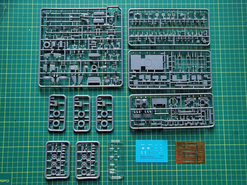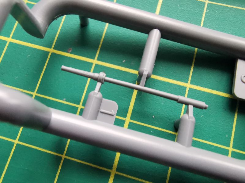 Wszak zmiany dotyczą jedynie końcówki lufy i tego należy spodziewać się po zawartości pudełka. Komplet wyprasek niemal identyczny, jak w przypadku modelu wersji Mk.I. Dołożono tylko wypraskę oznaczoną jako „J”. Jej zawartość to lufa z adapterem. Wykonana całkiem ładnie w technologii form suwakowych, choć pewnie znajdą się tacy, którzy podczas budowy zastosują jakiś zamiennik, toczony lub drukowany, jak tylko pojawi się na rynku.