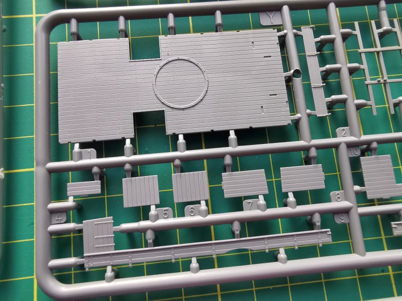 Są za to wypraski zawierające platformę do zabudowy haubicy oraz elementy samej haubicy wraz z wyposażeniem. Są to ramki „Y” i „W”. Jak natomiast wyglądają rozmieszone na nich elementy, widać na powyższych zdjęciach.