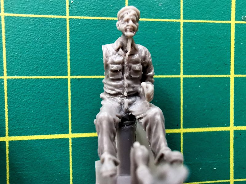 Figurki żywiczne z CMK zawsze darzyłem wielką estymą za bardzo wysoką jakość wykonania i odwzorowania szczegółów. Pamiętam figurkę dowódcy U-boota z kanapka w jednym ręku i kubkiem kawy ze sterczącą łyżeczką w drugiej. Skala 1/72. Ten zestaw składa się z dwóch figurek kierowcy i chyba pracownika jakiegoś czeskiego odpowiednika PGR-u w Barabanowie Górnym. Przyjrzałem się tym figurkom pod dużym powiększeniem i stwierdziłem, że projektant znał się na rzeczy a do zagadnienia podszedł z dystansem i poczuciem humoru. Facjaty obu Panów mówią same za siebie. Brakuje tylko antenki na berecie, peta w pysku i bełta w dłoni. Ale to można dorobić we własnym zakresie.