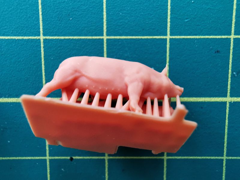Świnki powstały bowiem w formie wydruku 3D, dzięki czemu oddano nawet najdrobniejsze szczegóły anatomiczne lochy i trzech prosiąt, które to wchodzą w skład zestawu. Wydrukowano je w pomarańczowo – różowej żywicy, co powinno ułatwić malowanie.