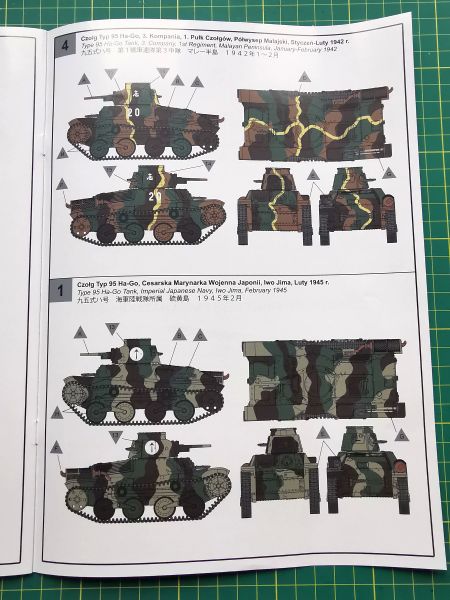 Producent przewidział trzy warianty malowania dla czołgów średnich Type 89 Kou. Dwa pierwsze malowania pochodzą z Wysp Macierzystych a dokładnie z 7 Pułku Czołgów, trzecie zaś z bliżej nie ustalonej jednostki z Chin. Wszystkie malowania pochodzą z pierwszej połowy lat 40. zeszłego stulecia. W przypadku czołgów lekkich Type 95 Ha-Go dysponujemy dwoma malowaniami. Pierwsze z nich pochodzi z 1 Pułku Czołgów operującego na początku 1942 roku na Półwyspie Malajskim, zaś drugie wyróżniające się oryginalnym kamuflażem i godłem na wieżyczce to pojazd z nieustalonej jednostki z okresu walk o Iwo Jimę w 1945 roku.