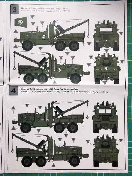 Dołączone do zestawu kalkomanie umożliwiają wykonanie modelu w jednej z czterech opcji malowania. Wszystkie w jednolitym amerykańskim malowaniu Olive Drab. Różne są tylko oznaczenia. Uwagę jednak zwraca malowanie powojenne, gdzie białe gwiazdy zostały zastąpione napisem „US Army”.