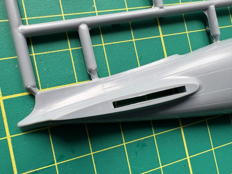 Podobnie ma się rzecz z wypraską „B” gdzie znajdziemy dolne zewnętrzne części skrzydeł, dwa warianty usterzenia pionowego, z których wykorzystamy jeden, silniki z osłonami oraz trochę elementów wnętrza kadłuba i gondoli silnikowych. Linie podziału blach na całym modelu są wklęsłe ale równe i wyraźne, czy to świadczy o regeneracji form, tego nie wiem, ale być może. Są też dwa warianty nosa, z których także wykorzystamy jeden, z charakterystycznymi reflektorami.
