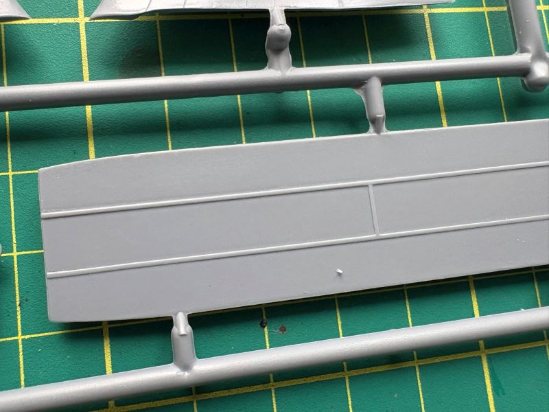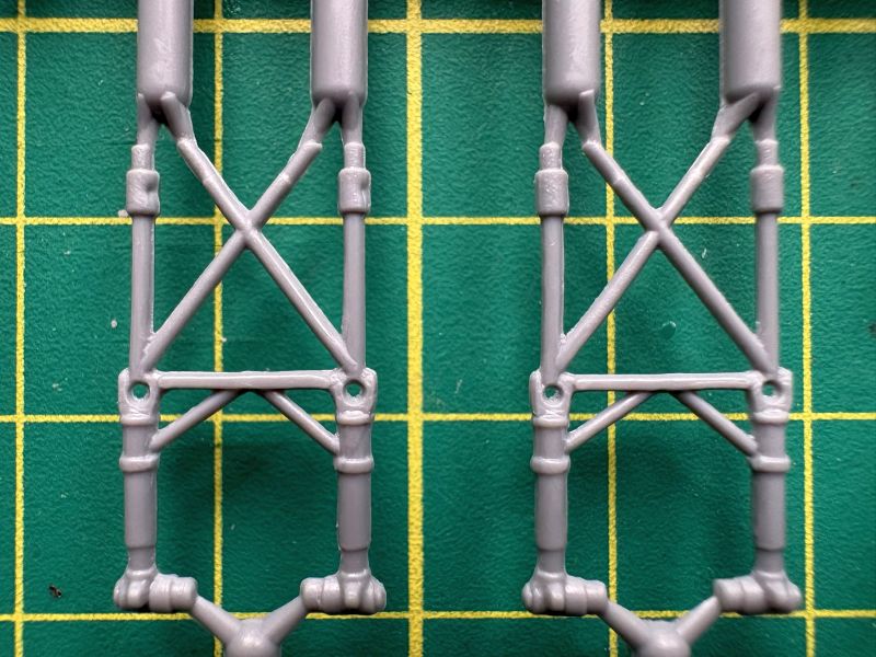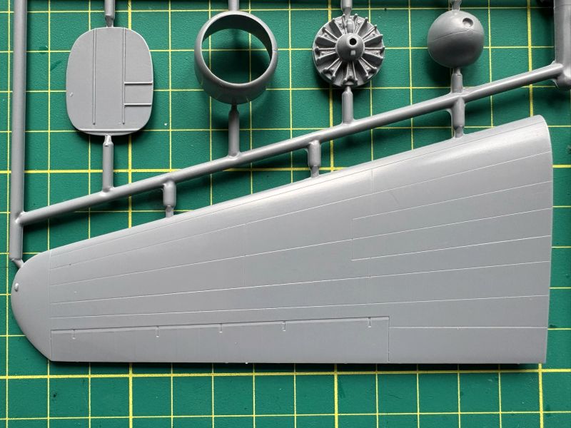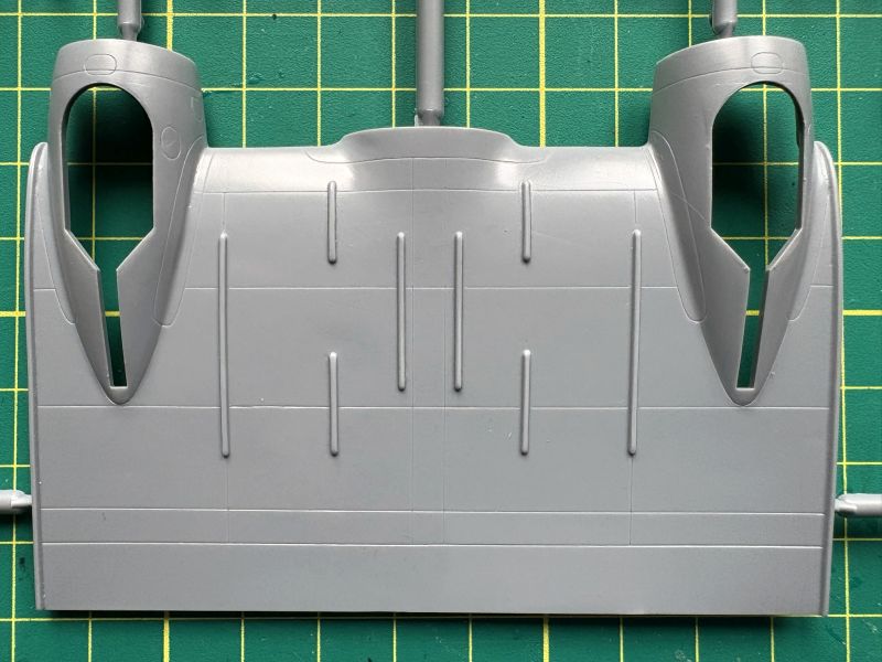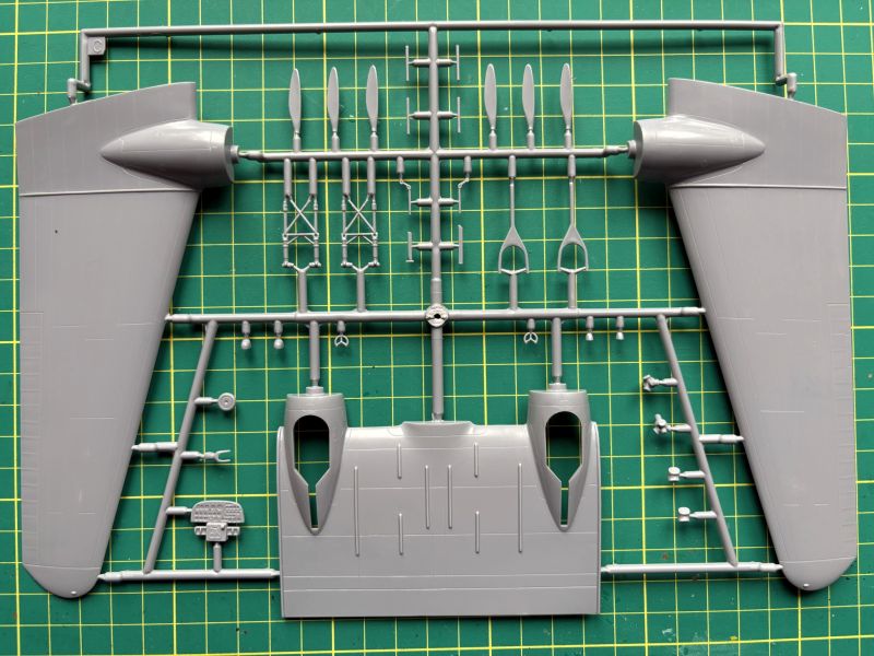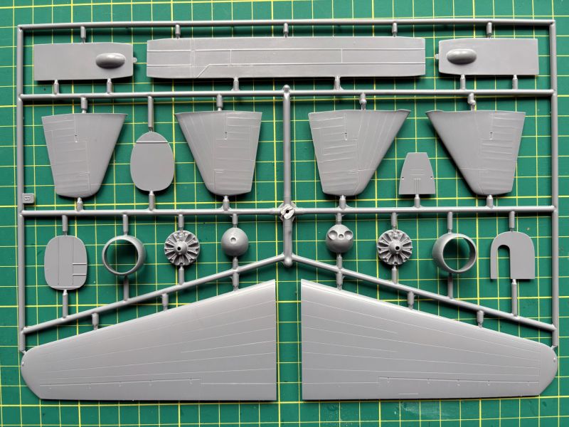 Ponieważ pierwsze wydanie zestawu miało miejsce ćwierć wieku temu, nietrudno się domyśleć, że będziemy mieli do czynienia z short runem. Musimy się przygotować na konieczność starannego oczyszczenia z krawędzi po łączeniu form wszystkich miejscach stykua z sobą poszczególnych elementów. Musimy także mieć świadomość, że nie wszystko tu będzie się składać jak klocki. Wypraski jednak wyglądają nieźle, o czym można się przekonać oglądając zdjęcia tej, oznaczonej jako „A”. Zajdziemy na niej połówki kadłuba, usterzenie poziome, koła podwozia głównego oraz fotele pilotów. Czyszczenia i szlifowania o którym wspominałem będzie względnie niedużo.