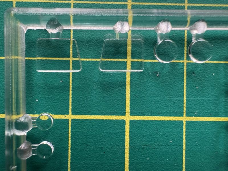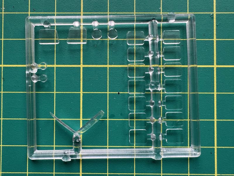 Ramka z oszkleniem jest niewielka w stosunku do opisanych powyżej. Znajdziemy na niej wiatrochron, okna kabiny pasażerskiej oraz klosze reflektorów. Jakość wykonania jest bez zarzutu. W przypadku budowy modelu w konwencji „prosto z pudła” możemy wkleić, jak jest, jeśli natomiast będziemy odtwarzać wnętrze, chyba dobrze zrobi drobna polerka.