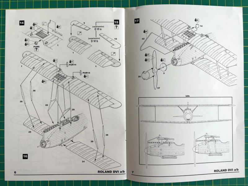 Instrukcja ma postać czarno – białej broszurki wydanej na kredowym papierze. Jest ona opracowana w sposób bardzo czytelnie, przez co nie powinno być problemów z przejściem przez kolejne etapy budowy. Ważne jest także to, że typowe rysunki montażowe zostały uzupełnione rzutami poszczególnych fragmentów samolotu, tak aby można było wychwycić poprawną geometrię akurat budowanych podzespołów.