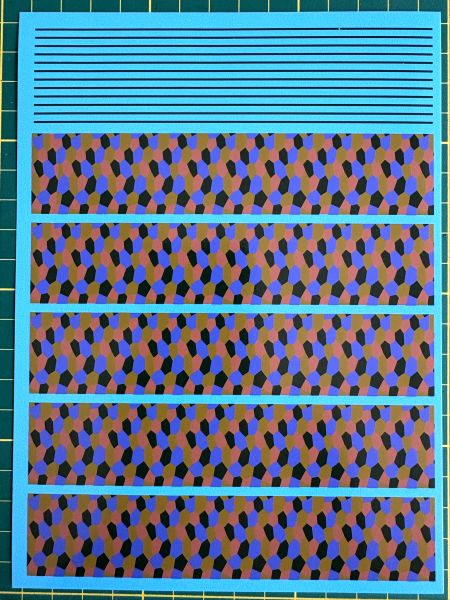 Dwa największe arkusze kalkomanii to imitacja drukowanego płótna Lozegne. Jest ono bardzo charakterystyczne dla niemieckich samolotów z okresu I wojny światowej. Nie ma też się co czarować, poprawnie położone na modelu prezentuje się niezwykle atrakcyjnie. Nakładanie go na model nie jest jednak łatwe. Bardzo natomiast cieszy, że producent zdecydował się na dołączenie tych kalkomanii do zestawu, bo nie jest to reguła. Najczęściej należy je dokupować osobno. Tu mamy dwa arkusze, ponieważ stosowano dwa wzory, na górne i dolne powierzchnie. Na każdym arkuszu znajduje się po pięć pasów lozegny o szerokości odpowiadającej szerokości rolki płótna w oryginale. W formie kalkomanii wykonano także paski wzmacniające umieszczane na żebrach.