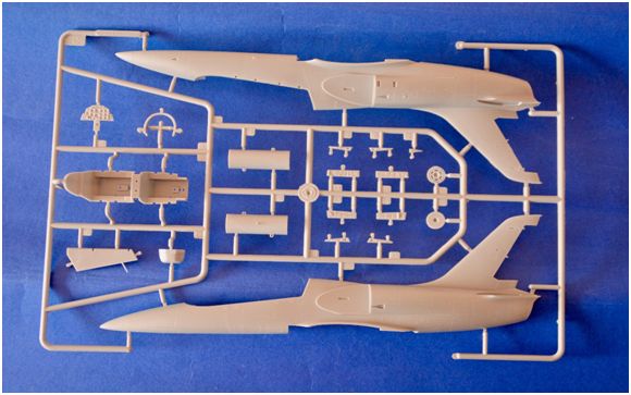 Elementy z pozostałych ramek, jak już wspomniałem są w kolorze szarym. Podczas ich oglądania nie stwierdziłem jakiś rażących niedociągnięć, nadlewek lub miejsc po wypychaczach, które mogły by negatywnie wpłynąć na budowę modelu. Elementy mają bardzo subtelnie zrobione podziały na kadłubie i skrzydłach. Linie i nitowanie są wgłębne, ale nie przesadnie. Razem daje nam ok. 140 elementów w zestawie.