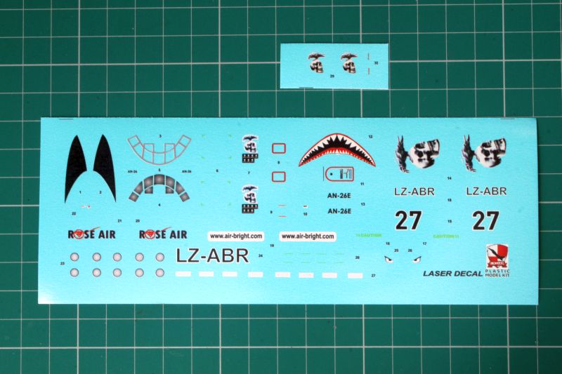 Kalkomanie składają się z dwóch arkusików. Na pierwszym większym, większym znajduje się komplet oznaczeń, napisów eksploatacyjnych oraz imitacje okien, jak ktoś lubi. Na drugim dwie dodatkowe czaszki. Rysunek kalkomanii jest poprawny pod względem merytorycznym, nie ma także błędów drukarskich. Możemy wykonać model aż w trzech malowaniach, z różnych okresów funkcjonowania samolotu w firmie Rose Air. Różnią się one jedynie oznaczeniami na kadłubie, zaś jeśli chcemy wykonać model maszyny "filmowej" trzeba wybrać wariant z napisem "www.air-bright.com".