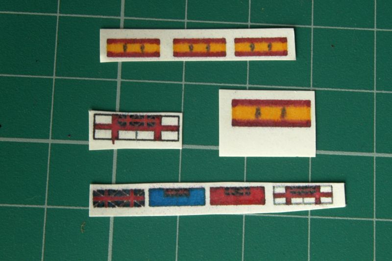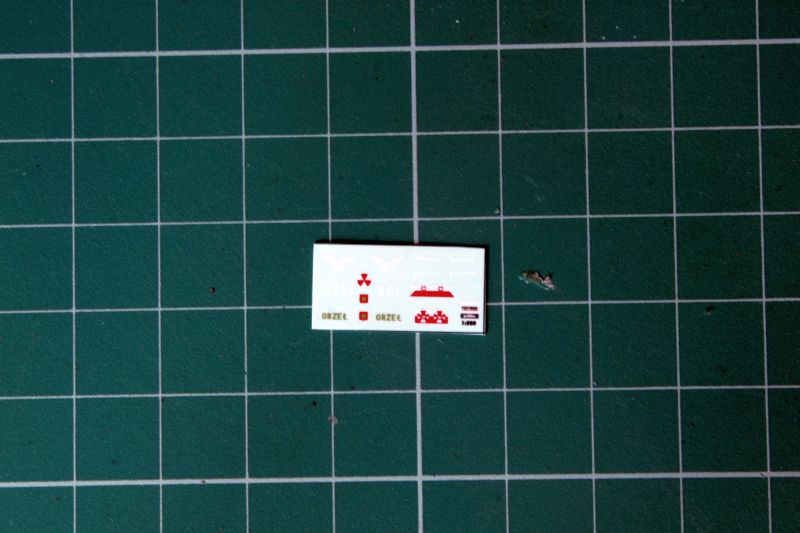 Do zestawu producent dołączył niewielii arkusik kalkomanii na której znajdują się oznaczenia, numery, godło i co najważniejsze bandery. Problem polegać może jedynie na tym, że wszystkie elementy kalkomanii są naprawdę małe, a trzeba je wycinać osobno i dokładnie.