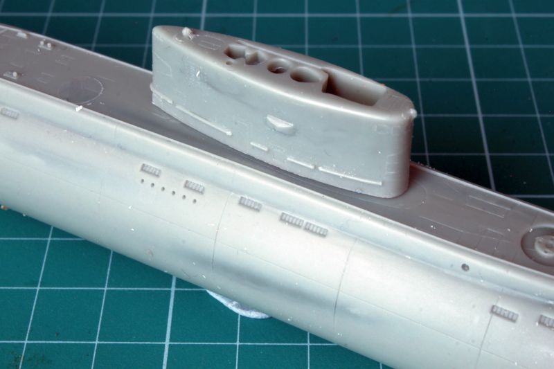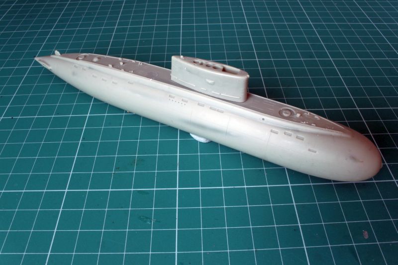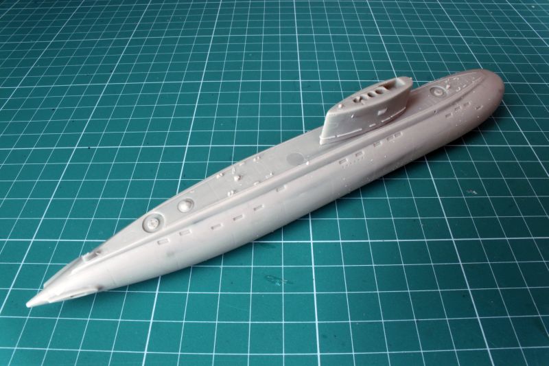 Model okrętu podwodnego A-26 wykonano w nieco innej konwencji niż poprzednie, czyli Malutką, Whiskey i Foxtrota. Kiosk nie jest tu integralnym elementem kadłuba, z tego względu, iż producent przewidział jego dwa rodzaje - standardowy i wykonany w technologii stealth. Do kiosku montujemy dziobowe stery głębokości oraz wszelkiego rodzaju maszty i anteny. Do kadłuba montujemy z kolei krzyżowe usterzenie, śrubę napędową, oraz jakieś coś, co wygląda na antenę holowaną lub jakiś element napędu Stearlinga. Na pochwałę zasługuje to, że producent zdublował takie elementy jak śruby napędowe oraz przednie stery głębokości. Jakby poszło coś nie tak, jest element zapasowy.