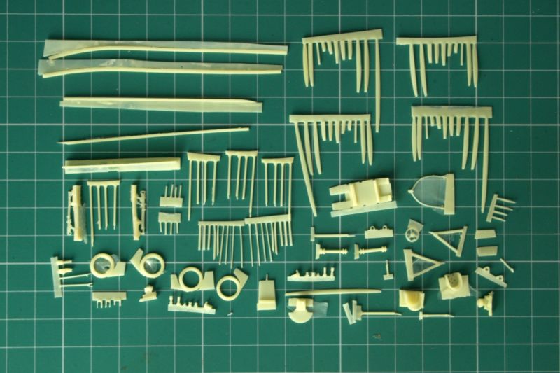 Elementów jak widać jest całkiem sporo i od razu wiadomo, że nie jest to model początkujących. Skomplikowana bryła, wiele pułapek związanych z samym montażem i uchwyceniem prawidłowej bryły i geometrii płatowca stanowić mogą nie lada wyzwanie nawet dla modelarzy z doświadczeniem. Efekt może jednak być niesamowity, tym bardziej, że uzupełnieniem elementów żywicznych jest całkiem spora fototrawiona blaszka. To pozwoli nam uczynić z budowanej miniatury prawdziwe modelarskie cacko. Dołączona do zestawu kalkomania umożliwia wykonanie modelu w jednym z czterech dość podobnych do siebie malowań - trzech francuskich i jednego amerykańskiego. Moim zdaniem warto zwrócić uwagę na jedno z nich, Escadrille C.47, maszyna Rene Fnocksa i Paula Tibergera. Jak każdy model Choroszego, także i ten jest wart uwagi, lecz jeszcze raz podkreślam, zestaw wymaga sporego doświadczenia.