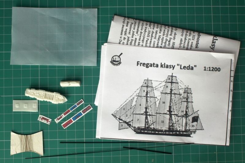 Kolejną nowością w ofercie Mikrostoczni jest model brytjskiej fregaty typu "Leda". Model trafił do sprzedaży dosłownie na tydzień przed BFM-em, więc można go uznać za festiwalową premierę. Zestaw opracowany został dosłownie w tej samej konwencji jak omówiony powyżej "San Juan Nepomuceno", czyli żywiczny kadłub i kilka drobnych elementów, pręty węglowe, płótno i bandery wydrukowane na samoprzylepnym papierze. Co do jakości części żywicznych nie mam zastrzeżeń, obróbka kadłuba konieczna jest tylko przy linii wodnej. Z instrukcji za to możemy dowiedzieć się za to sporo o niezwykłej historii tego okrętu, który stał się protoplastą całej serii fregat budowanych na potrzeby Royal Navy. Niezwykła historia i piękna sylwetka sprawia, iż model ten jest naprawdę wart polecenia.