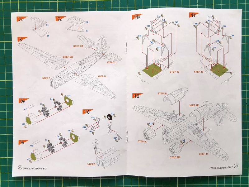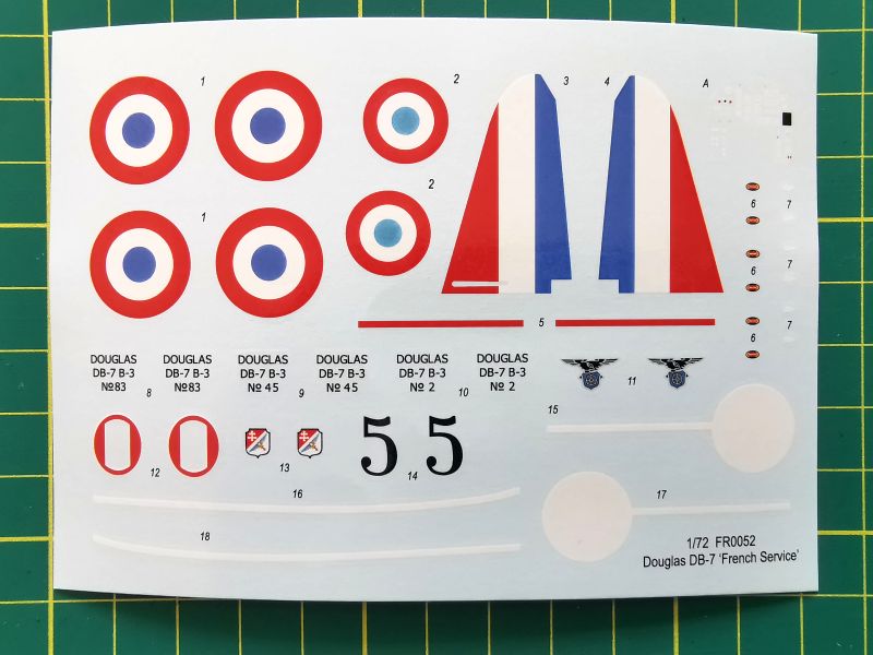 Jeśli chodzi o sposób wydania zestawu i szatę graficzną pudełka czy instrukcji, w firmie Azur Frrom nie zmieniło się kompletnie nic. Zwraca uwagę bardzo ładny boxart przedstawiający DB-7 pod ogniem artylerii przeciwlotniczej. Jeżeli chodzi o zawartość pudełka, to od początku było wiadomo, że powstała ona w Czechach, a dokładnie w firmie Special Hobby, która wciela w życie koncepcje wydawnicze firmy Azur Frrom. Mamy zatem kolejnego przedstawiciela licznej rodziny modeli średnich bombowców Douglasa wydawanych najpierw pod szyldem MPM a później Special Hobby. Dlatego myślałem, że będę miał ułatwione zadanie i opiszę tylko różnice pomiędzy poprzednimi zestawami rodem z Czech a francuską propozycją. Okazało się jednak, że to zupełnie nowy zestaw, choć mocno nawiązujący do poprzedników. Dotyczy to podziału technologicznego i ogólnej koncepcji modelu. Dlatego zdecydowałem się na omówienie całej zawartości pudełka, bez pomijania czegokolwiek.