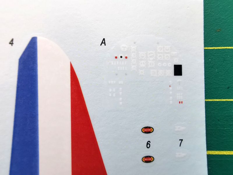 W skład zestawu nie wchodzą natomiast żadne dodatki w postaci blaszek, żywic, czy coraz bardziej powszechnych wydruków 3D. Zatem zajmijmy się teraz kalkomanią. Średniej wielkości kartonik a na nim dość sporo elementów graficznych wydrukowanych na dość grubym filmie, co może sugerować, że ich producentem jest Eduard, a zatem bo wyschnięciu, owego filmu będziemy mogli się pozbyć. Trzeba przyznać, że zostały wydrukowane bardzo ładnie, nie ma żadnych wad drukarskich, kolorystyka też bez zarzutu. Ważne jest także to, że mamy też kalkę na tablicę przyrządów. We wcześniejszych modelach Azur Frrom bywało z tym różnie, instrukcja swoje, kalkomanie swoje. Tu jest i to całkiem szczegółowa.