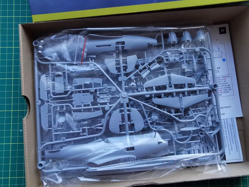 Zawartość pudełka niemal identyczna jak w przypadku poprzedniego zestawu – trzy ramki z jasnoszarego tworzywa, jedna przezroczysta, kulki balastu, drukowana errata, kalkomanie, maski i instrukcja montażu i malowania. Warto zwrócić także uwagę, że na krótko przed pojawieniem się modelu w sprzedaży na stronie producenta pojawił się obszerny artykuł Grzegorza Mazurowskiego opisujący przygotowania do produkcji i oczywiście modyfikacje form mające na celu wyeliminowanie zasadniczych niedoskonałości zestawu, ujawnionych już w toku produkcji. Warto się z nim zapoznać: