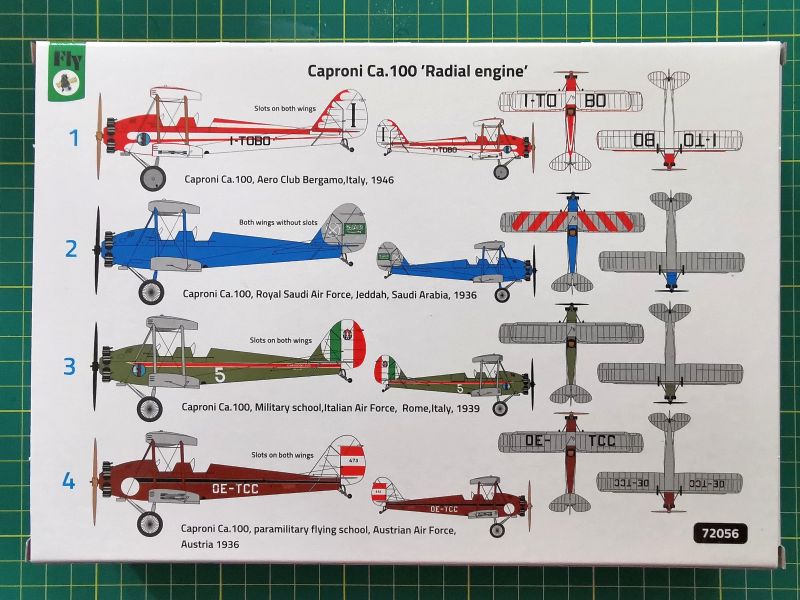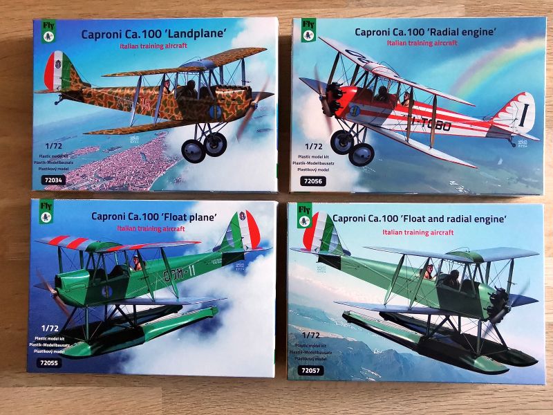 Po wydaniu serii modeli samolotów Bregeuet 14, producent czeska firma Fly powraca z nową propozycją. Nie tak dawno na rynek trafiła nowa seria modeli wydanych dla odmiany w podziałce 1/72. Są to miniatury włoskich samolotów szkolno – treningowych Caproni Ca.100. Musze przyznać, że od razu zwróciły moją uwagę, sylwetką przypominającą nieco nasze rodzime Bartele tylko z włoskim wysmakowanym designem. Dodatkowym argumentem była możliwość wykonania wersji pływakowej. Dzięki uprzejmości producenta, mogłem zapoznać się z zawartością wszystkich zestawów.
