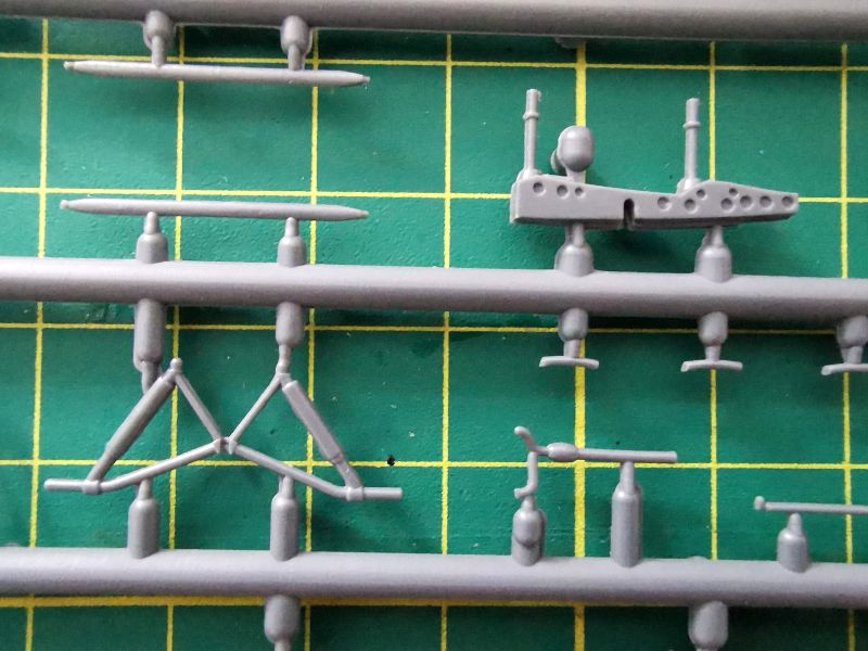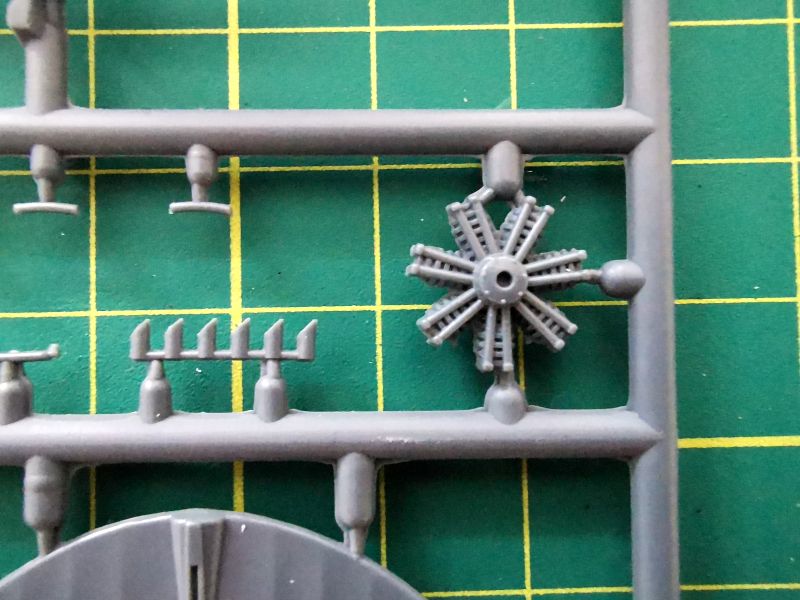 Podobnie jest ze wszystkimi powierzchniami sterowymi, które są wykonane jako integralne części usterzenia i dolanego płata. Jak chcemy nadać nieco życia naszej miniaturze, musimy się nieco postarać sami. Poza tym znajdziemy na tej wyprasce bardzo ładnie wykonane pływaki, silnik gwiazdowy oraz podobnie jak w przypadku poprzednio omówionej ramki trochę drobnych detali. Jedyne co może budzić zastrzeżenia to nieco grube popychacze cylindrów silnika gwiazdowego. Można oczywiście spróbować to poprawić, ale jeżeli jest do dyspozycji żywiczny zamiennik, można przemyśleć jego zastosowanie. Osobiście bardziej przypasowała mi wersja z tą właśnie jednostką napędową, ale co w tym zakresie zrobię, jeszcze nie wiem.