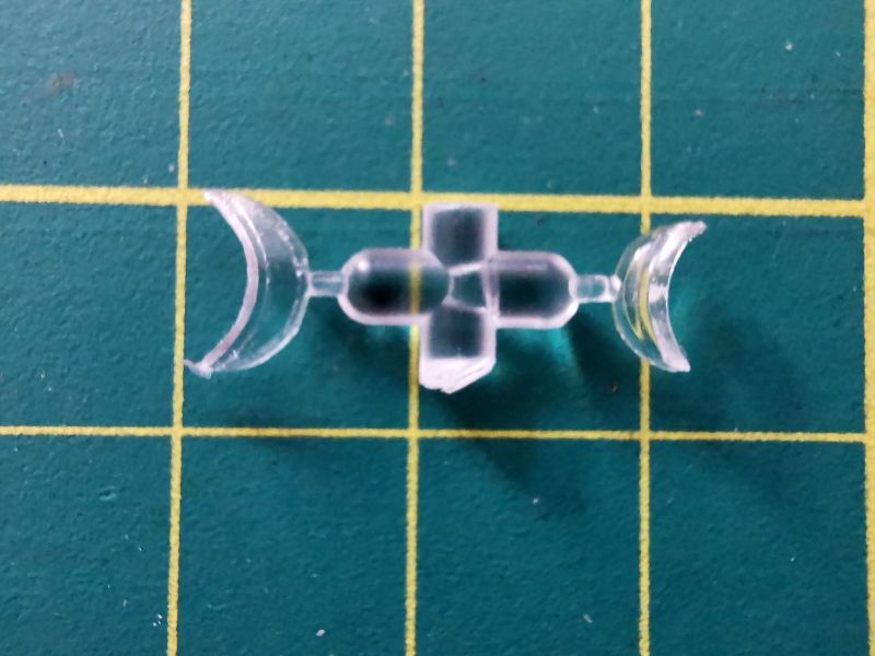 Oszklenie stanową jedynie dwa wiatrochrony. Na pewno trzeba będzie uważać przy wycinaniu, bez względu na to, czy zamontujemy je w modelu czy posłużymy się nimi jako szablonem do wykonania własnych, na przykład z jakiegoś kawałka kliszy. Blaszka natomiast to szprychowane koła, które zastosujemy tylko w przypadku budowy modelu w wersji lądowej, oraz trochę innych detali, z których skorzystamy niezależnie od wersji.