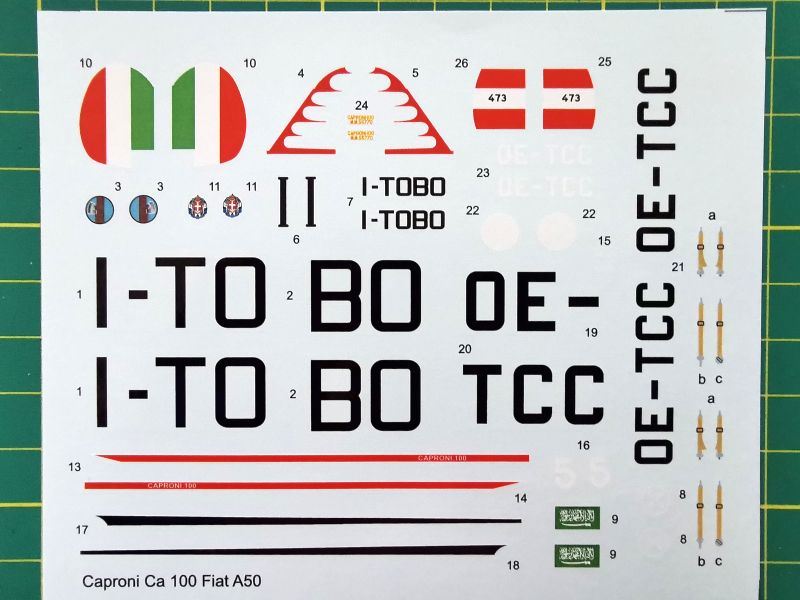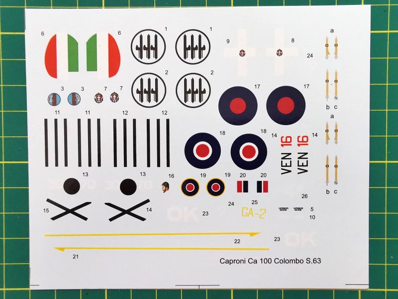 Zupełnie inaczej jest natomiast w przypadku obu malowań lądowych. W obu wypadkach spore arkusiki kalek, bo wariantów sporo, bo po cztery na zestaw. Poza włoskimi mamy warianty hiszpańskie, brytyjskie, austriackie a nawet z Arabii Saudyjskiej.