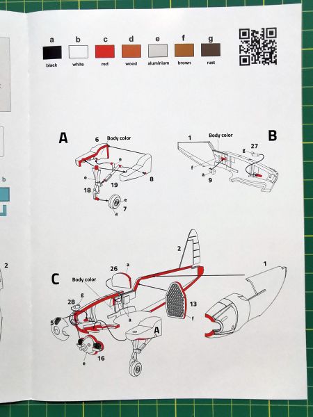 Instrukcja montażu jest także taka sama dla obu zestawów. Jest to kolorowa ulotka, której cała zawartość widoczna jest powyżej. Kolorystyka podana jest w oparciu o paletę AK Interactive.