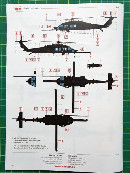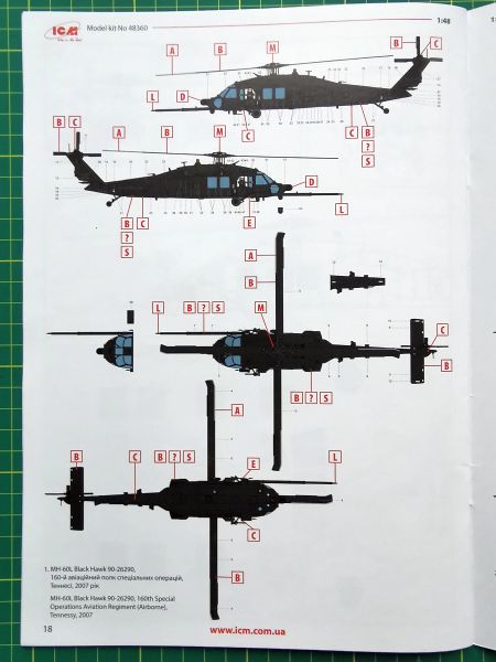 Zacznę może od tego, dlaczego zapowiedź tego modelu, a właściwie całej ich serii wzbudziła takie zainteresowanie? Dlatego, że nowego opracowania modelu tego śmigłowca w skali 1/48 nie było od dwudziestu czterech lat. Wtedy bowiem pierwszego swojego Black Hawka w skali 1/48 wydała włoska Italeri. Na rynku obecny jest jeszcze zestaw opracowany przez koreańską Academy, jeszcze starszy. Oba prezentują niezły poziom, ale nie czarujmy się, w dzisiejszych czasach obydwa „trącą myszką”. Nowe, świeże podejście do zagadnienia było niewątpliwie pożądane. Tu właśnie pojawia się firma ICM, w pierwszej kolejności serwując Black Hawka w wersji MH-60L, czyli używanej przez siły specjalne.