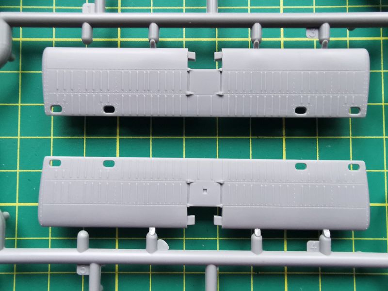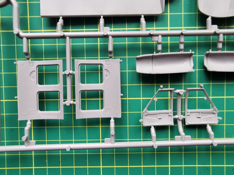 Oszklenie, składa się oczywiście z okien, a jest ich dość sporo, ale także kloszy różnego rodzaju lamp i reflektorów. Jak widać wszystko co znajduje się na tej ramce wykonano, tak jak ICM zdążyło nas przyzwyczaić. Na bardzo wysokim poziomie. Szyby mają doskonałą przejrzystość i to co znajdzie się pod nimi będzie równie doskonale widoczne. Warto zatem przyłożyć się do wykonania wnętrza modelu i uważać podczas montażu oszklenia i później malowania, żeby nie pobrudzić szyb klejem lub farbą.