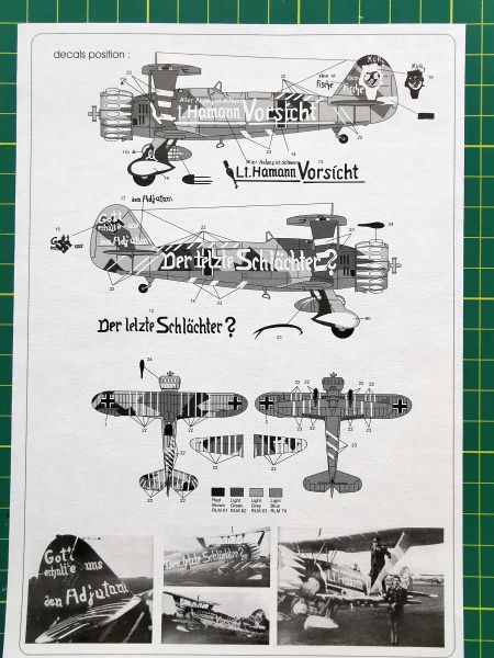 Kalkomania do tego zestawu została wydrukowana w Niemczech. To dość spory arkusz, ponieważ jedno z propozycji malowania zawiera szereg emblematów w kolorze białym w postaci napisów, pasów i różnych innych rzeczy, którymi pokryty jest praktycznie cały samolot. Uwagę zwracają oczywiście przecięte na pół dla poprawności politycznej swastyki, zaś wszystkie elementy kalkomanii wydrukowane zostały prawidłowo pod względem merytorycznym i technicznym.