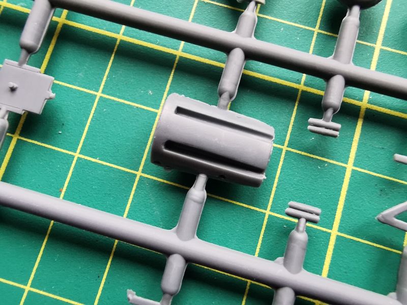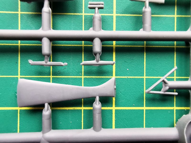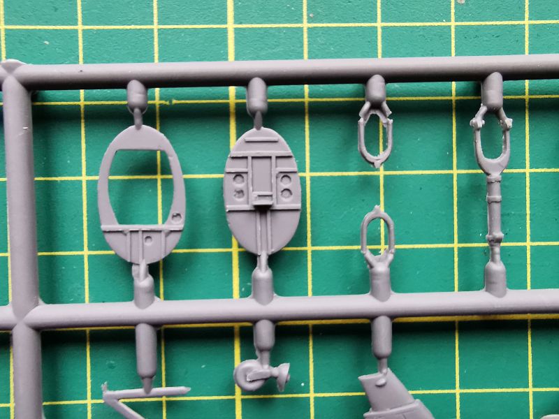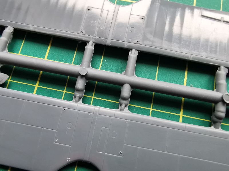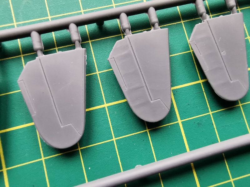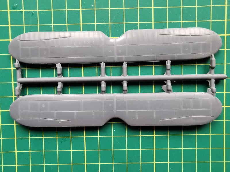 Zacznijmy jednak od form wtryskowych. Wykonane z szarego dość twardego tworzywa. Do dyspozycji mamy dwie wersje kadłuba, z garbem za kabiną lub bez. Nie zostały rozmieszczone na typowej wyprasce. Pierwsze wrażenie może nie być pozytywne, zwłaszcza jeśli obok położymy wypraskę od modelu wieloseryjnego, także wydanego w tym samym okresie.