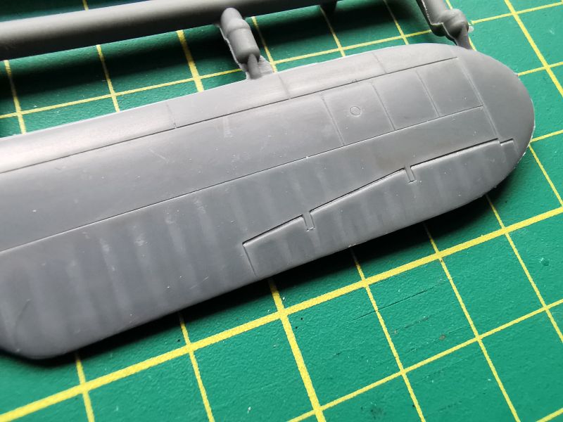 Po wycięciu elementów od tego czegoś udającego ramkę wtryskową, wszystkie krawędzie należy dokładnie obrobić najpierw pilnikiem a potem papierem lub gąbkami ściernymi. Także ładnie wykonana faktura a ster kierunku jest osobnym elementem. Podobnie jak w przypadku usterzenia poziomego producent przewidział dwa warianty. Dolny płat jest za to tylko jeden.