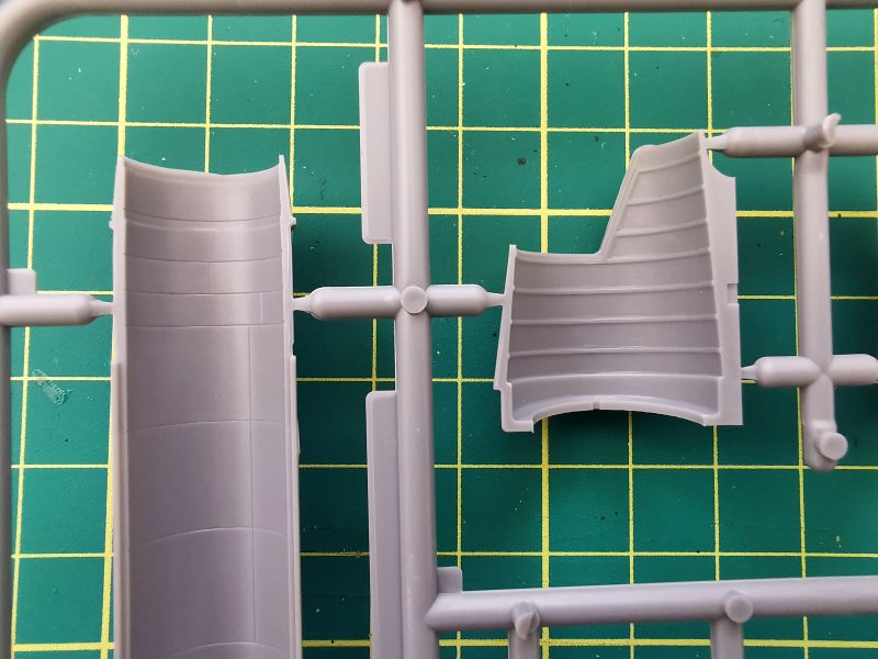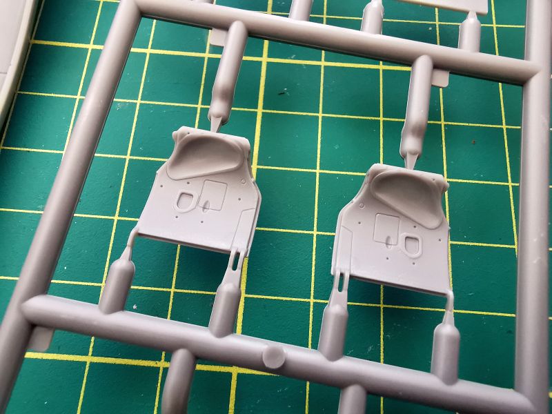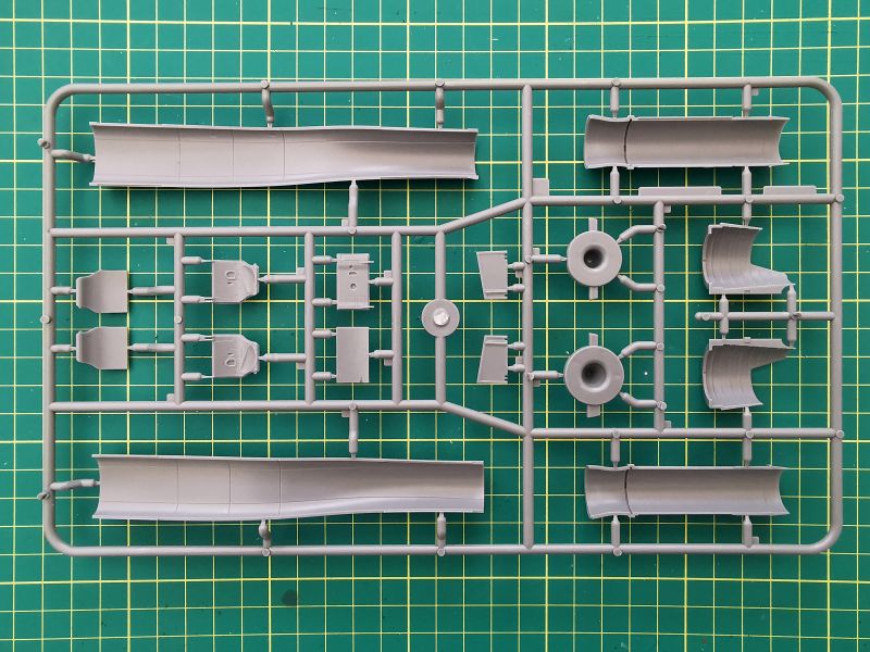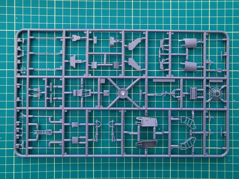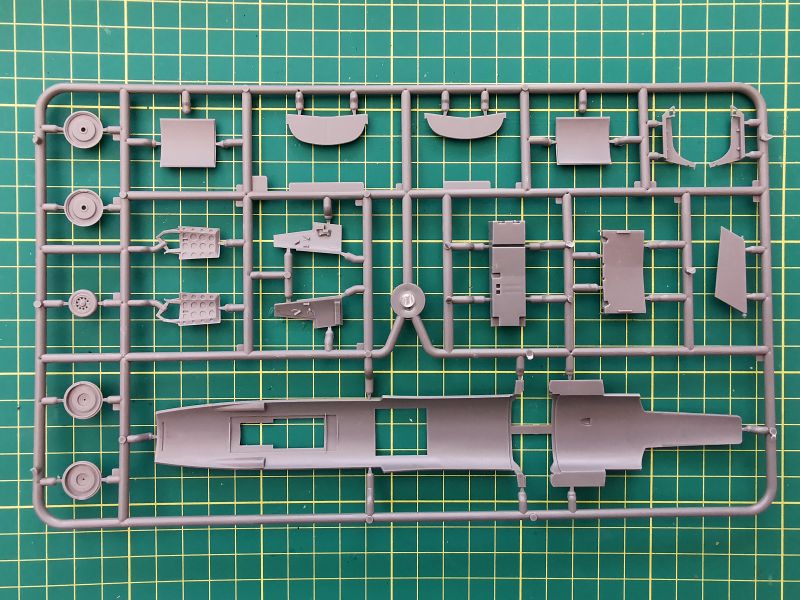 Kadłub ma klasyczny podział na prawą i lewą połówkę. No prawie klasyczny, bo dolna jego część stanowi osobny element. Do niego zamontujemy wnęki podwozia głównego i przedniego i połączymy z resztą kadłuba. Te elementy znajdują się na ramce „D”. Są też tam koła, pokrywy hamulców aerodynamicznych i detale fotela, ale w naszym przypadku ich nie wykorzystamy pomimo, że prezentują się naprawdę ładnie.