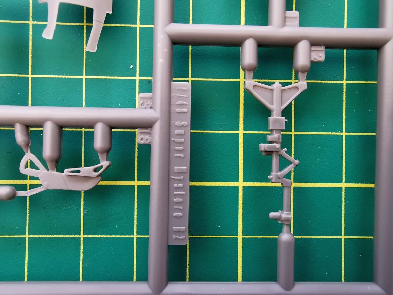 Z takiego właśnie tworzywa wykonana została ramka „A” na której znajdują się połówki kadłuba, wlot powietrza, dysza oraz dwa podstawowe podzespoły kokpitu. Od razu widać także to, że jest to jeden z nowych produktów Special Hobby a nie wznowienie modelu od pewnego czasu będącego na rynku. Nie zaobserwowałem żadnych wad produkcyjnych w postaci deformacji wyprasek, jamek skurczowych i temu podobnych rzeczy. Ślady po wypychaczach owszem są, ale nie znajdują się w niewidocznych miejscach. Gdzie nie gdzie mogą pojawić się drobne, proste do usunięcia nadlewki. Faktura powierzchni kadłuba wyraźnie wskazuje na cyfrowe projektowanie modelu. Linie podziału oczywiście wgłębne. Jednocześnie delikatne i równe a jednocześnie wyraźne. Imitacje szwów nitowych wykonano tylko w niektórych miejscach. Jeżeli komuś to nie wystarcza, musi poradzić sobie sam.