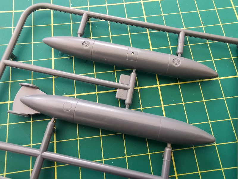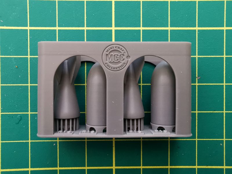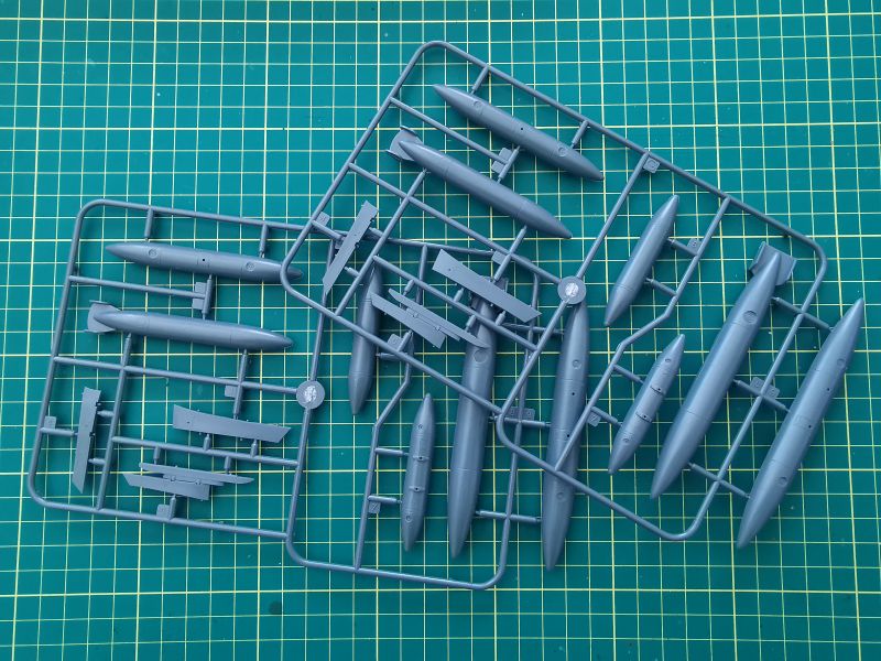 Same bomby 250 kg znajdują się na kolejnym wydruku, a każda z bomb składa się z dwóch elementów. Wszystkie szczegóły konstrukcji bomb wykonane są jak należy. Jest też alternatywa, w postaci zestawu CMK zawierającego belki wielozamkowe z bombami 100 kg. (CMK 4476)