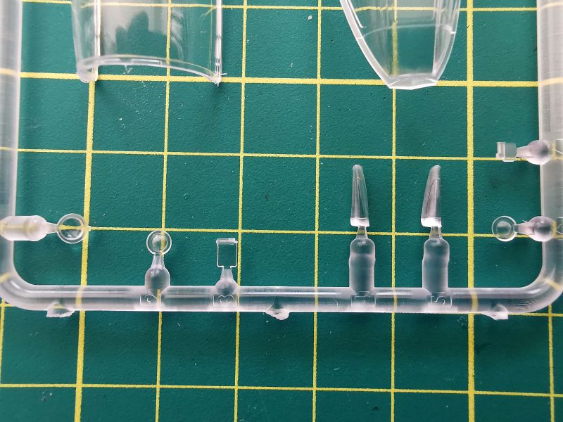 Ramka z oszkleniem jest stosunkowo niewielka. Znajduje się na niej dzielona osłona kabiny oraz klosze lamp pozycyjnych, reflektorów do lądowania i szyba celownika. Oszklenie nie jest specjalnie za grube ani też przesadnie cienkie. Po prostu porządnie wykonane o dobrej przejrzystości, nie dające efektu soczewki.