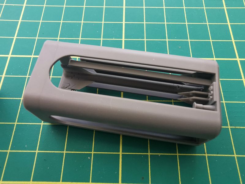 Dwa ostatnie, dość spore wydruki to niekierowane pociski rakietowe, wraz z prowadnicami. Każdy pocisk to kilka precyzyjnych detali. To także te elementy, które „robią robotę” w całym modelu.