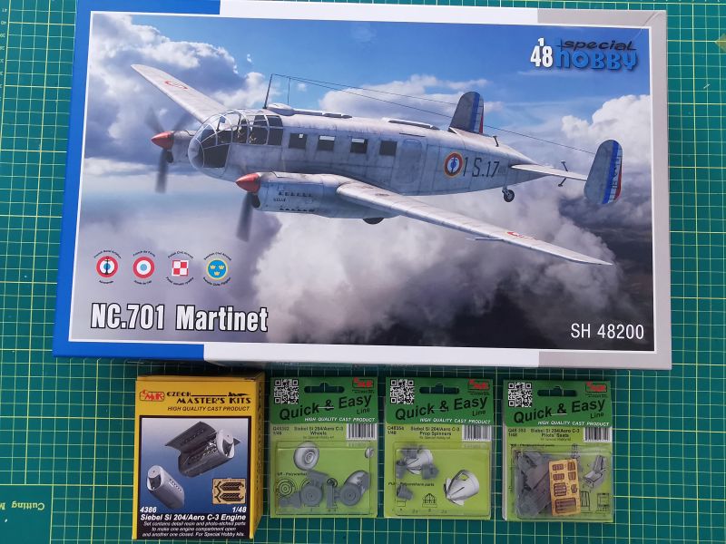 NC.701 Martinet. Nazwa cokolwiek obca, lecz sylwetka znajoma. Nawet bardzo znajoma. Mowa tu oczywiście o produkowanym po wojnie we Francji niemieckim samolocie pasażerskim Siebel Si.204. Samolot ten był produkowany także w Czechosłowacji jako Aero C-3A i pod tą nazwą zrobił karierę wśród polskich modelarzy, zwłaszcza starszego pokolenia. Model francuskiej odmiany tego samolotu nie tak dawno wydała w podziałce 1/72 firma Special Hobby i dzięki uprzejmości producenta mogłem zaznajomić się z zawartością pudełka z modelem oraz żywicznych dodatków firmy CMK.