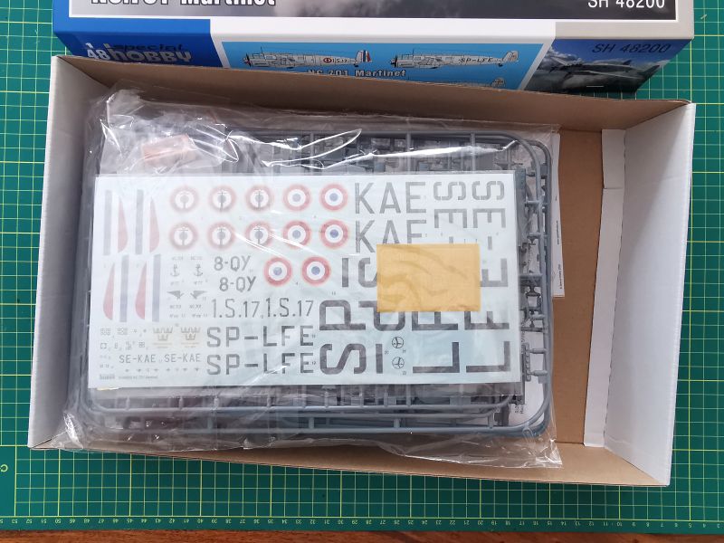Niezależnie od wybranej wersji, do budowy użyjemy zawartości niewielkiej blaszki fototrawionej oraz masek które jednak nie służą do malowania oszklenia, ale do dokonania kilku przeróbek części nosowej samolotu w przypadku wyboru wersji szwedzkiej. Musimy delikatnie usunąć część ram oszklenia, a za pomocą tych masek wytrasować nowe. Do tematu masek jeszcze wrócimy.