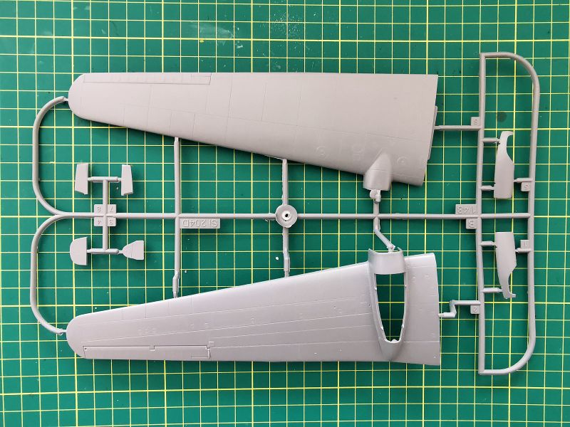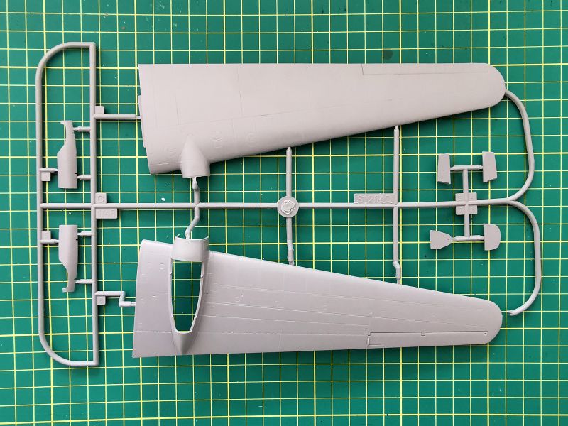 Dwie kolejne ramki, oznaczone jako „B” i „C” to podzespoły skrzydeł i luków podwozia. Faktura powierzchni także wykonana w sposób bardzo poprawny, w takim samym stylu co kadłub. Klapy oraz lotki stanowią integralne części skrzydeł. Przeróbki czekają zatem tych, co będą chcieli coś powychylać lub pootwierać. Fakturę zaznaczono także w lukach podwozia i ich pokrywach. W kilku miejscach pojawiają się też delikatne nadlewki, przypominające o technologii wykonania modelu. Na szczęście łatwe do usunięcia.