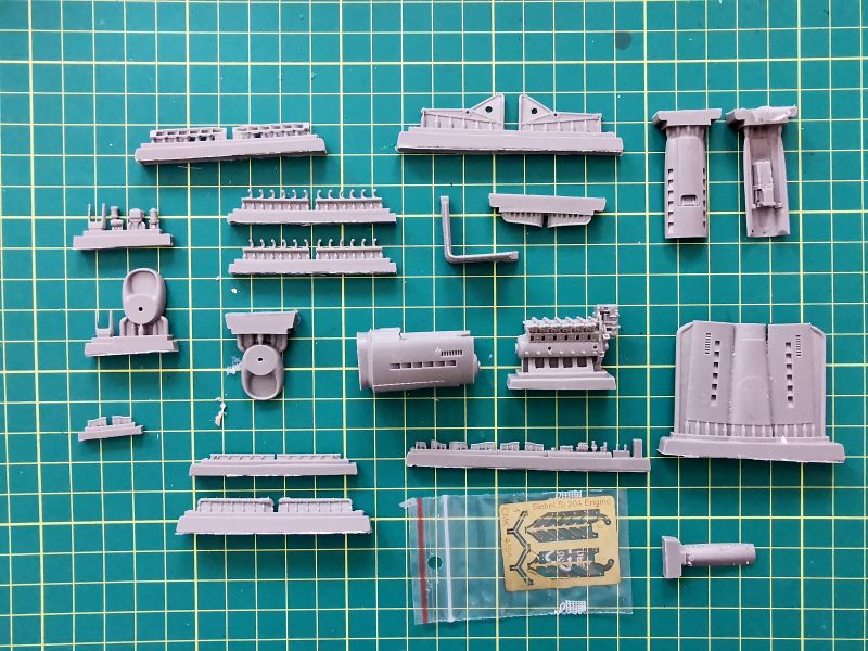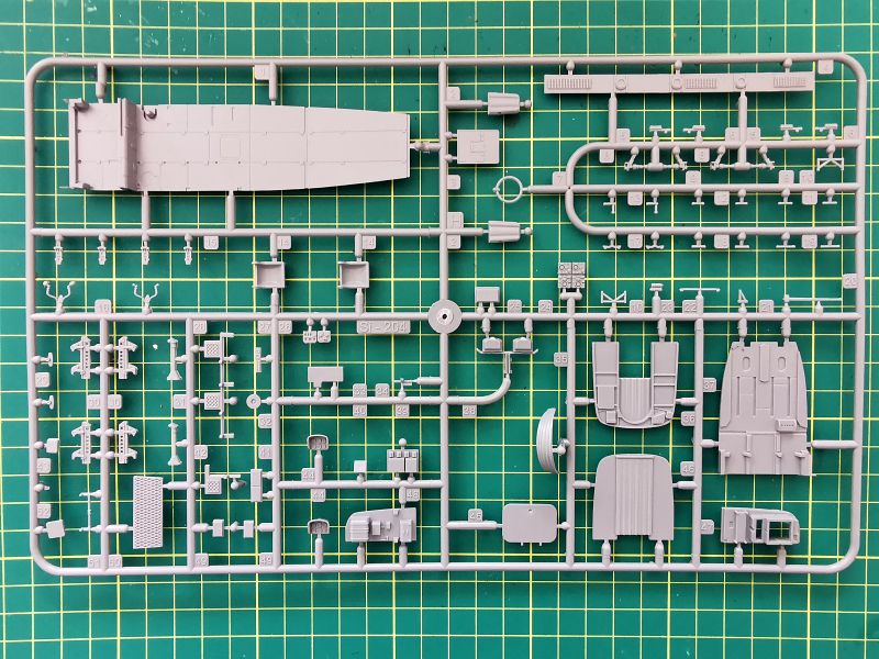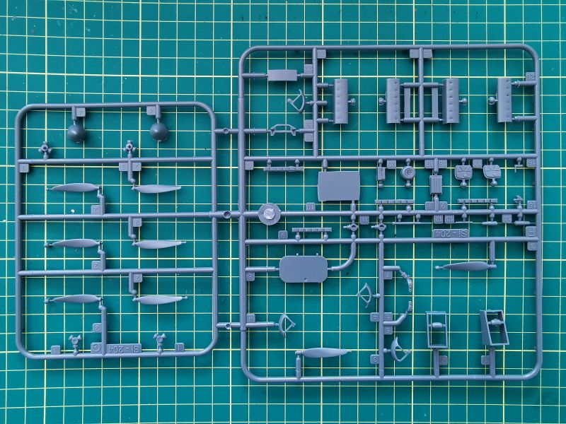 W skład zestawu wchodzi kilkanaście odlewów z jasnoszarej żywicy oraz niewielka fototrawiona blaszka. Jedną z nich możemy wykonać z podniesionymi pokrywami bocznymi, żeby wyeksponować silnik, drugą zaś zamkniętą. Silnik jednak w nie jest, a właściwie jego dolna część, która będzie widoczna przez otwór z przodu. W tym miejscu jednak zachęcałbym do zadania sobie trochę trudu, żeby wyłapać ewentualne różnice pomiędzy samolotami budowanymi w Niemczech i Czechosłowacji a tymi budowanymi we Francji. Nie natknąłem się co prawda na informacje o innych, niż Argus AS.410 jednostkach napędowych, ale ostrożności w tym zakresie nigdy za wiele.