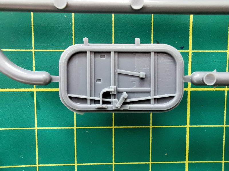 Kolejna z ramek, która wpadła mi w ręce posiada oznaczenie „I”. Znajdują się tam detale wnętrza. Lubię modele samolotów wielosilnikowych, bo tam się zawsze dużo dzieje we wnętrzu kadłuba, lukach podwozia i tego typu miejscach. Omawiany model w punkt trafił w moje upodobania, bo kadłub ma kompletne wnętrze od nosa po usterzenie, a ta ramka jest tego przykładem. Zaproponowane przez Special Hobby wnętrze nie będzie wymagało jakiejś specjalnej waloryzacji. Wystarczy dorobić kilka dźwigni czy przewodów, żeby prezentowało się znakomicie.