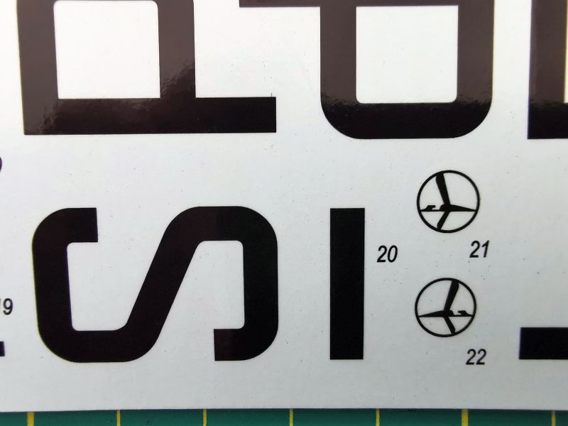 Temat wersji i malowań przewijał się już kilka razy, więc jest to dobry moment, aby zając się kalkomaniami wchodzącymi w skład zestawu. Spory arkusz, no bo przecież model do małych nie będzie należał. Znajdują się na nim oznaczenia, numery, kody literowe, trochę napisów eksploatacyjnych i co najważniejsze kalkomanie z zegarami. We wcześniejszych modelach tego producenta takie kalkomanie były wymieniane w instrukcjach, ale na arkuszach próżno ich było szukać. Teraz są. Nie jestem natomiast na chwilę obecną stwierdzić, kto jest producentem tych kalkomanii, czy jest nim Eduard (najprawdopodobniej tak), czy inny poddostawca. Jest to o tyle ważne, że kalkomanie Eduarda produkowane są w technologii umożliwiającej usunięcie błony po wyschnięciu. Zobaczymy zatem podczas budowy.
