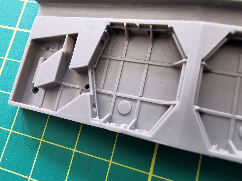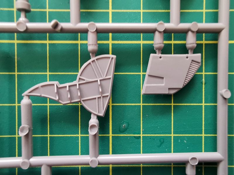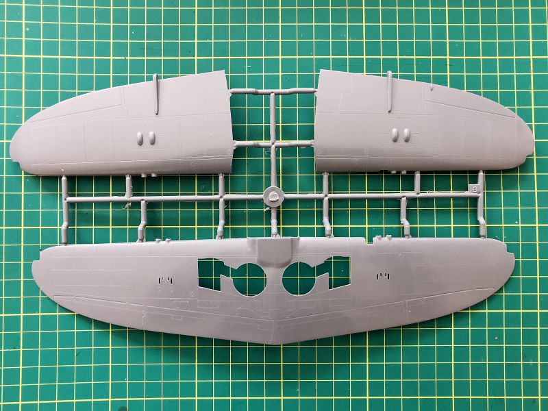 Skrzydła z całą pewnością zostały zaprojektowane i wykonane w sposób klasyczny, ręczny. Mają one klasyczny podział, co zresztą doskonale widać na zdjęciach. Linie podziału wklęsłe, ale równe i wyraźne, trochę w niektórych miejscach widać tę ręczną robotę. Nie ma kołków pozycjonujących, zaś lotki i klapy nie są odrębnymi elementami. Oczywiście po wycięciu z ramek trzeba je będzie potraktować narzędziami ściernymi.