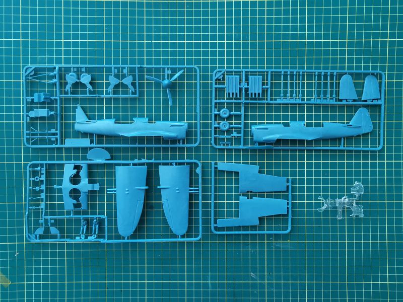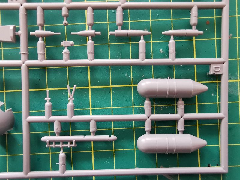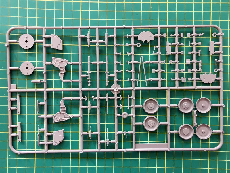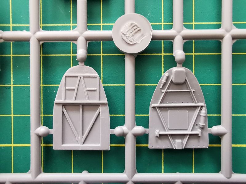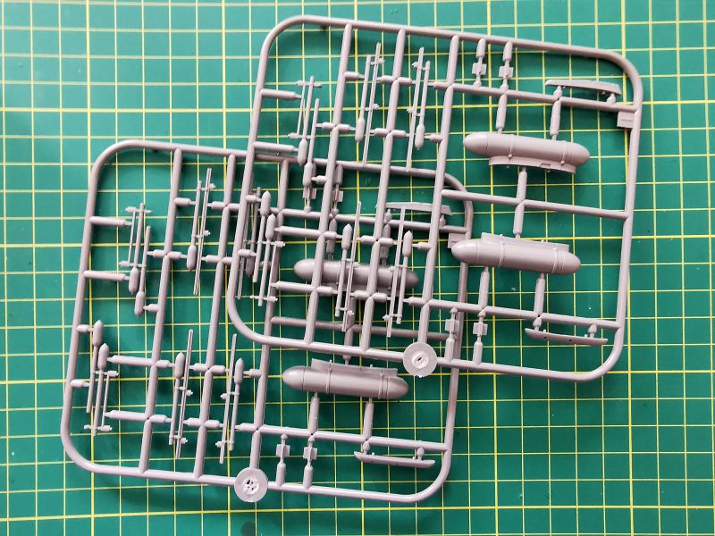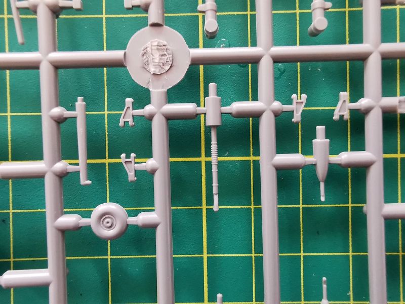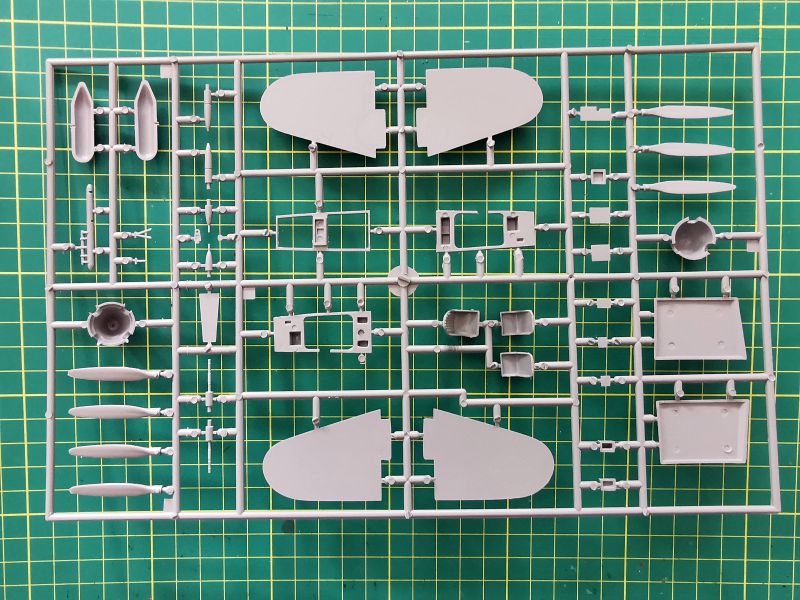 Kolejne trzy ramki zaprojektowano już cyfrowo. Pierwsza z nich zawiera wszelkie drobne detale kokpitu, podwozia, lufy działek, kilku typów i piasty śmigieł. Jest ona podobnie jak poprzednia, uniwersalna przeznaczona dla różnych wersji samolotu. Muszę przyznać, że przyjemnie się to ogląda, kokpit i podwozie to bardzo mocne punkty tego zestawu.