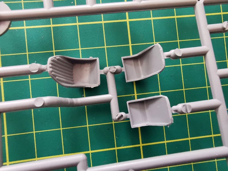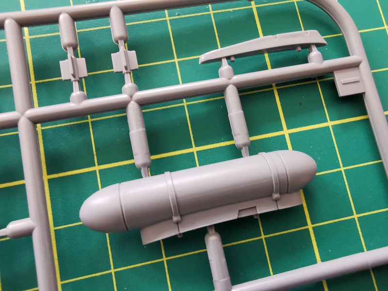 Dlatego, że większość wyposażenia znajduje się na kolejnych dwóch ramkach. Pierwsza z nich jest widoczna na powyższych zdjęciach. Poza detalami kokpitu znajdziemy tam także usterzenie poziome, dwa typy śmigieł, z których wykorzystamy trójłopatowe, oraz kilka innych drobnych detali. Ta ramka zawiera detale do różnych wersji samolotu i co wykorzystamy, zależy od tego, którą wersję chcemy budować. Ta ramka także powstała przy zastosowaniu klasycznych technologii o czym świadczy sposób wykonania usterzenia poziomego. Stateczniki składają się z górnych i dolnych połówek.