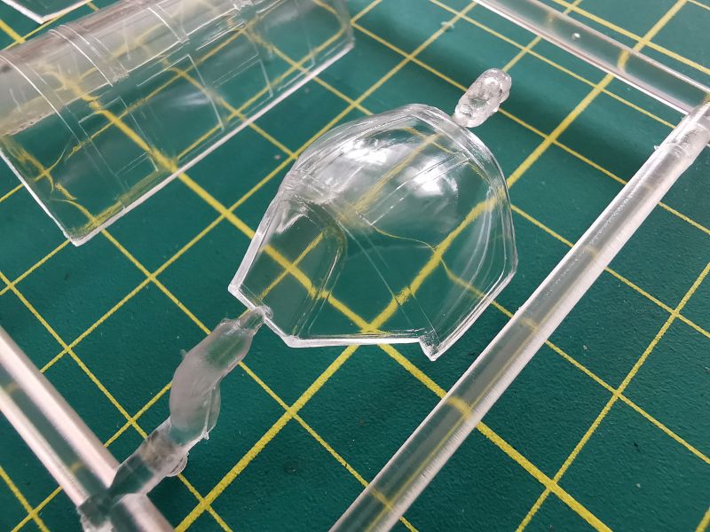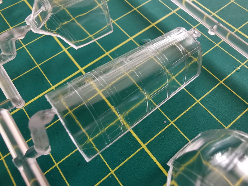 Ramka z oszkleniem jest dość skromna. Znajdziemy na niej dwa typy oszklenia na kabinę pilota w dwóch typach z których wykorzystamy jeden, oszklenie kabiny obserwatora oraz klosze świateł pozycyjnych i reflektora do lądowania. Oszklenie wykonano w sposób poprawny, ramy są równe i wyraźne. Jedynym mankamentem jest to, że nie są one dzielone i jeśli będziemy chcieli wykonać otwarte kabiny czeka nas trochę pracy samodzielnej.