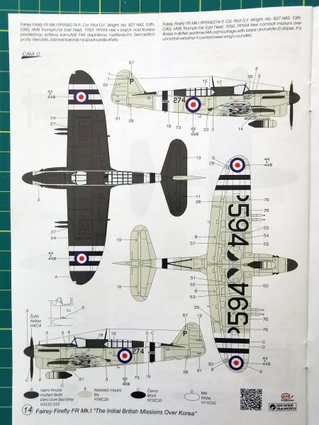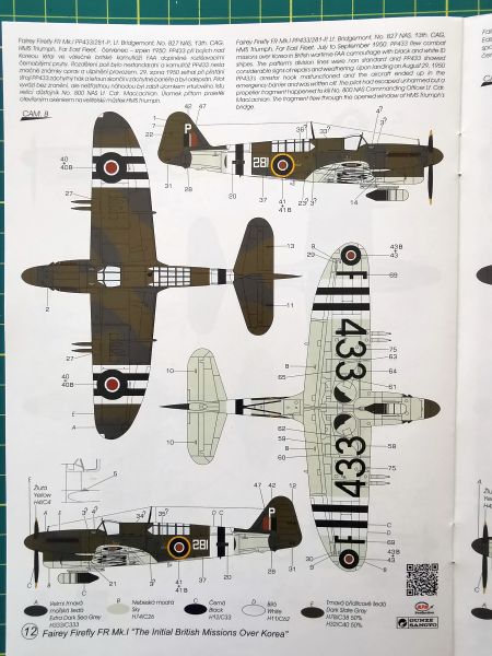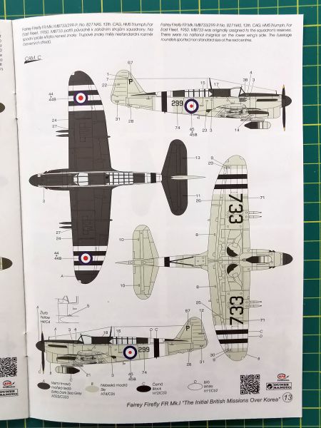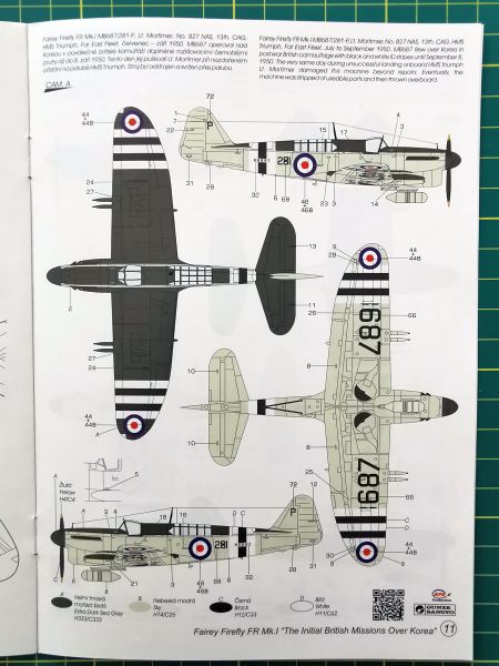 Do dyspozycji mamy cztery warianty malowania, wszystkie jak stanowi tytuł zestawu dotyczą samolotów, które wykonywały pierwsze brytyjskie misje bojowe w wojnie koreańskiej. Wszystkie z jednego dywizjonu bazującego w 1950 r. na pokładzie lotniskowca HMS „Triumph”. Trzy malowania niemal identyczne – ciemno szary i sky, zaś jedno nawiązujące do klasyki FAA z lat II wojny światowej.